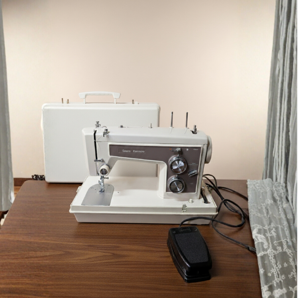 Sew with precision and nostalgia using this Kenmore ClassicCraft Vintage Sewing Machine, a true testament to Sears’ craftsmanship and reliability. Built to last, this sewing machine features a durable presser foot system and classic metal body, making it both functional and collectible. Perfect for sewing hobbyists or those who appreciate vintage engineering, it runs smoothly and remains in excellent working condition.